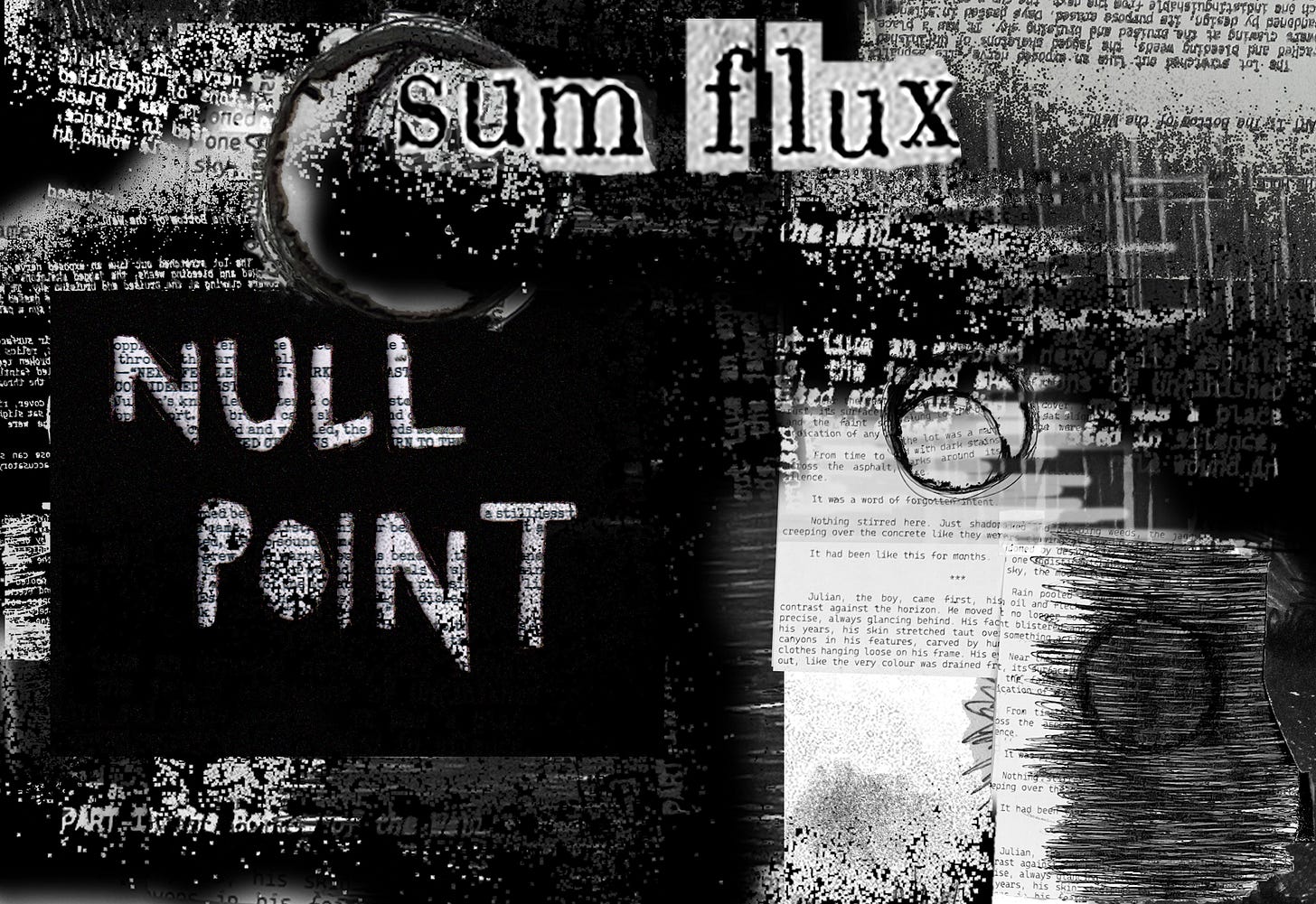 The lot stretched out like an exposed nerve, its asphalt cracked and bleeding weeds, the jagged skeletons of unfinished towers clawing at the bruised and bruising sky. It was a place abandoned by design, its purpose erased. Days passed in the silence, each indistinguishable from the next, the sun a pale wound, the moon little more than a blemish.